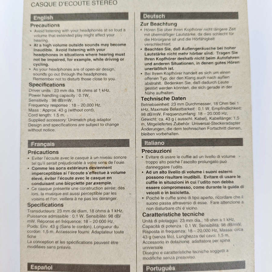 The MDR-A009 represents a slice of Sony history: lightweight, innovative, foldable, and designed to be the perfect companion for any Walkman. A smart, forward-thinking design for its time, now highly sought after by retro tech enthusiasts and dedicated collectors.